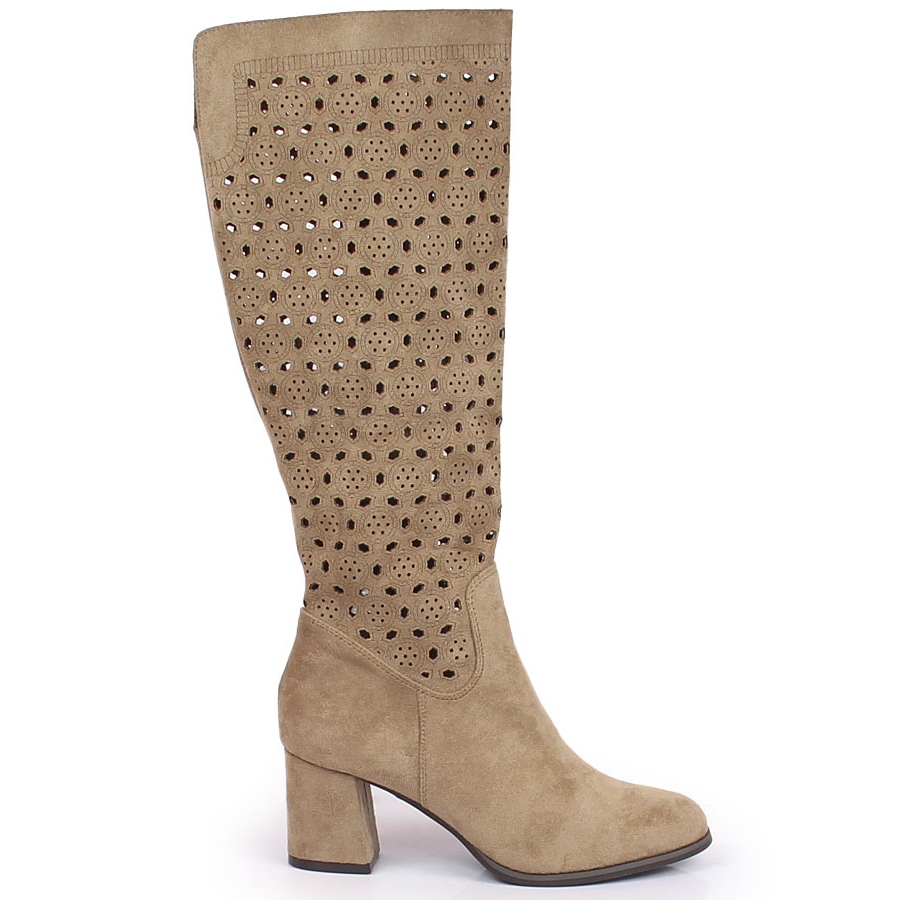 Yksityiskohdat: POTOCKI Naisten saappaat, harjakattoisia, mokkanahka ruskea Daszyński beige
