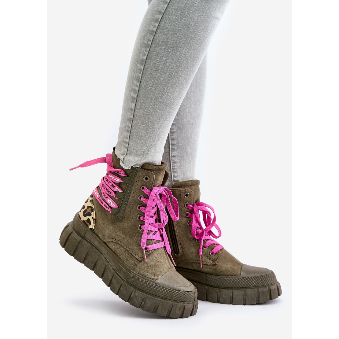 Inna marka Naisten saappaat, joissa koristeellinen nyöritys, leopardinvihreä Edidda