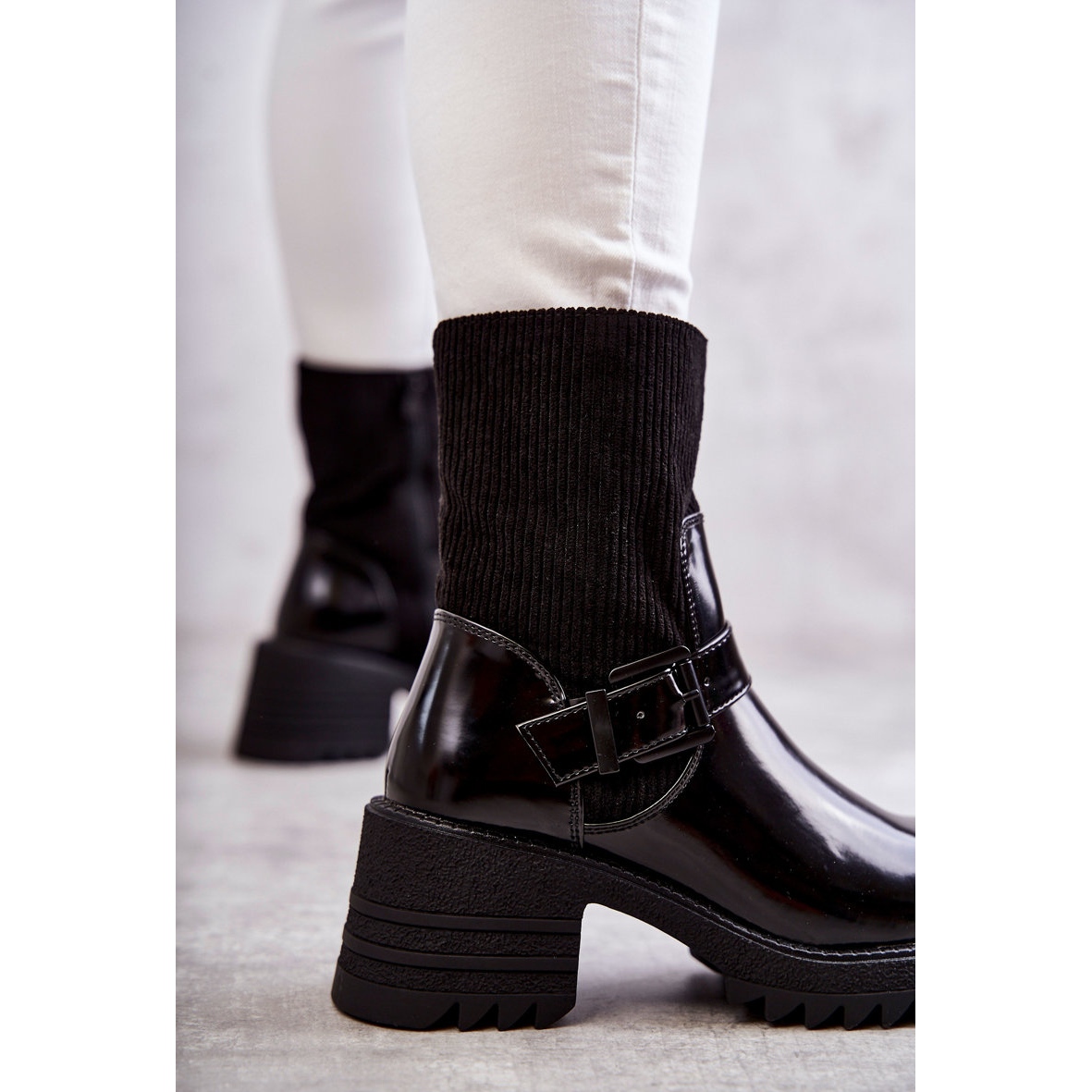 Yksityiskohdat: Naisten saappaat, jotka on lämmitetty paksulla kantapäällä, musta Marinela