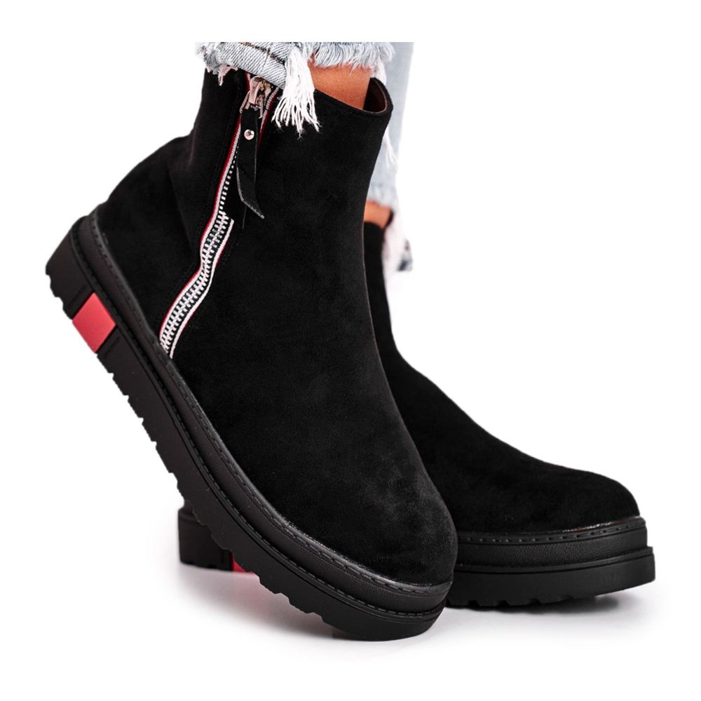 Naisten saappaat Kaksi vetoketjua Musta Come Back valmistajalta PS1 on täydellinen valinta syys- ja talvikauteen. Valmistettu korkealaatuisesta ekologisesta nahasta, joka jäljittelee täydellisesti mokkaa, ja niissä yhdistyy eleganssi ja mukavuus. Tämän mallin ominainen piirre on kaksi käytännöllistä vetoketjua - yksi ulkopuolella koristeena ja toinen sisäpuolella, mikä helpottaa kenkien pukemista.