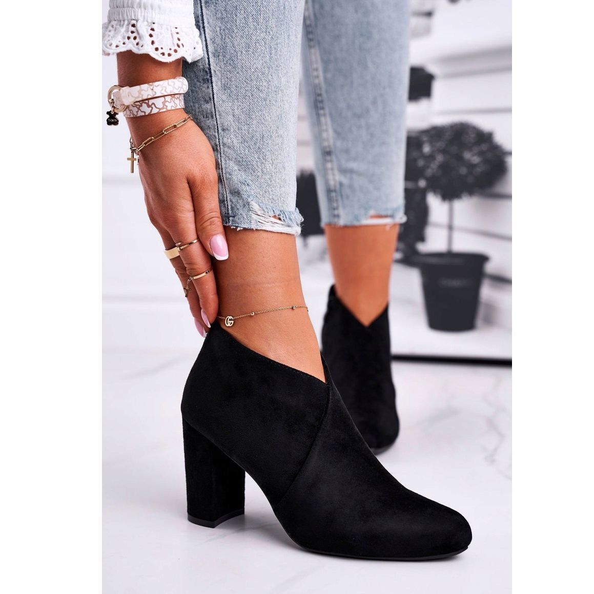 Saappaat on valmistettu korkealaatuisesta ekologisesta mokkanahkasta tyylikkäässä mustassa värissä, mikä lisää niihin eleganssia ja monipuolisuutta. Pyöreä kärki ja 8,5 cm lohkokorko tekevät kengistä paitsi esteettiset myös vakaat ja mukavat käyttää. Vetoketju varmistaa helpon pukemisen ja riisumisen, mikä on erittäin käytännöllistä jokapäiväisessä käytössä.