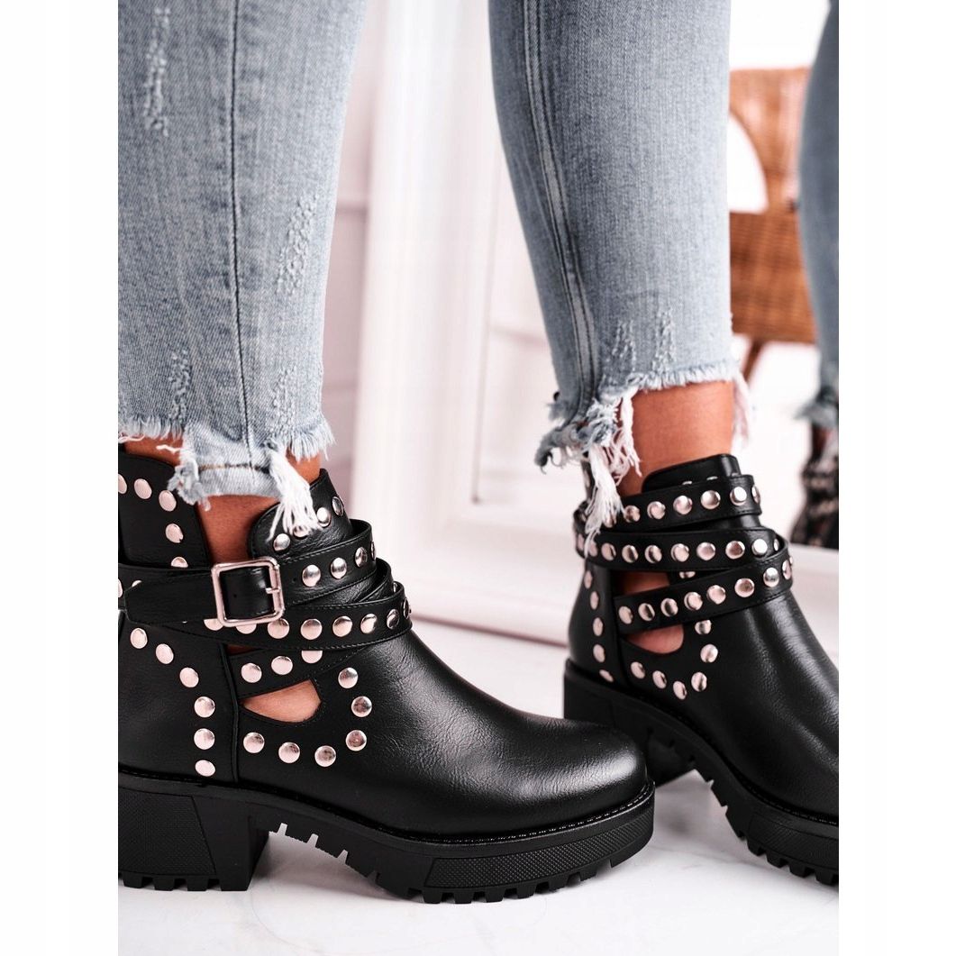Yksityiskohdat: Naisten saappaat niiteillä Grunge Black Heavenly musta