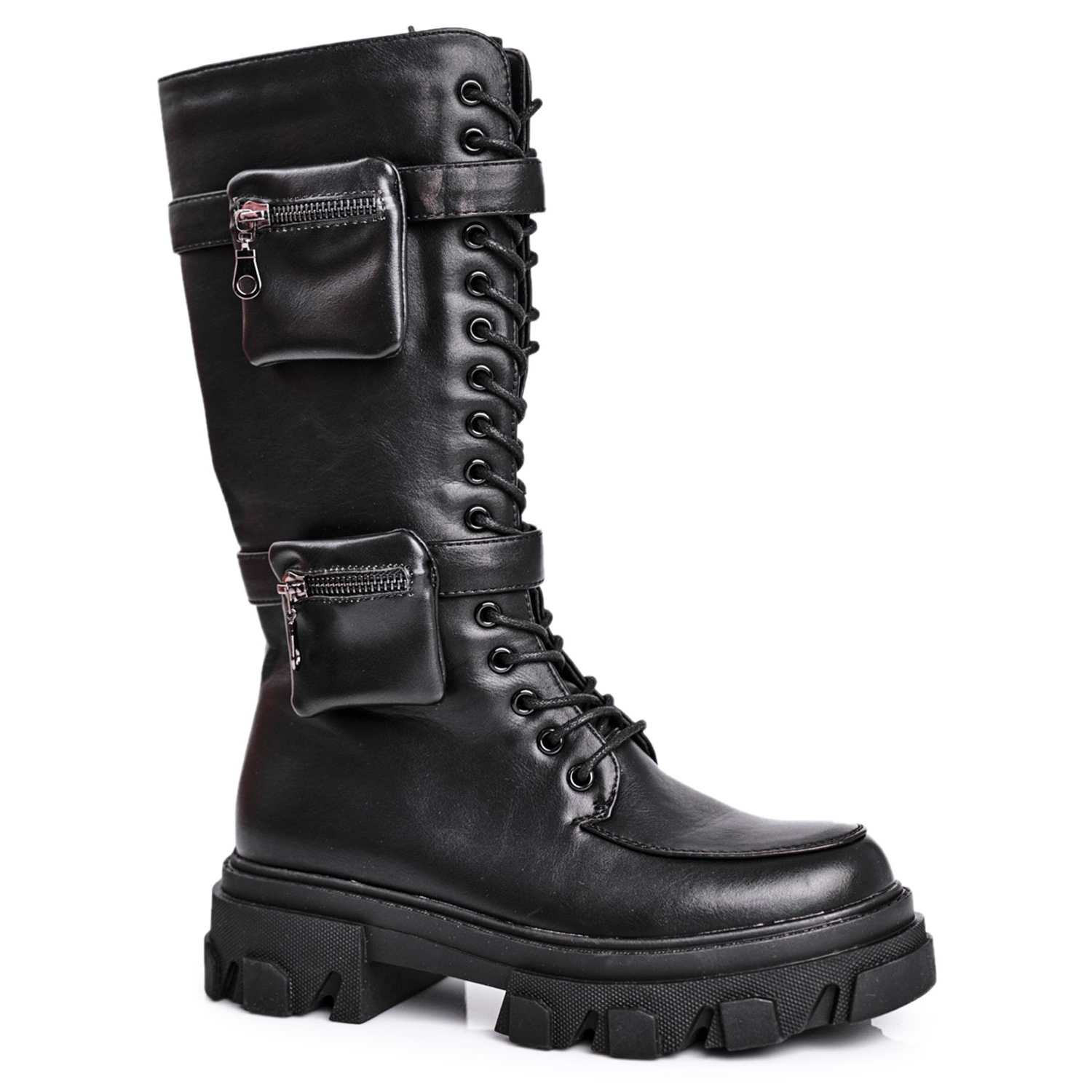 Jalkineiden muotoilu yllättää yksityiskohdilla - kaksi koristekassia päällisen sivulla lisäävät ainutlaatuista luonnetta ja mahdollistavat samalla pikkutavaroiden säilyttämisen. Sisäpuolella oleva hopeanvärinen vetoketju on käytännöllinen elementti, jonka avulla saappaat puetaan jalkaan nopeasti ja kätevästi.