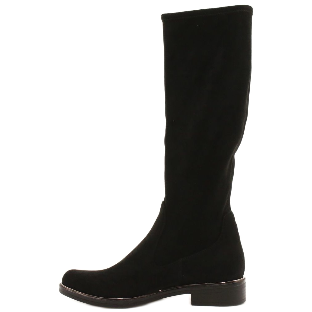 Tyylikäs Caprice -muskettisoturit klassisessa mustana, valmistettu lihallisesta venytetystä mokkamateriaalista. Joustava yläosa mukautuu täydellisesti vasikkaan, ja sisäinen silikoniteippi estää kengän liukumisen alaspäin - täydellinen pidempiin lähtöihin ja jokapäiväisiin tyylityksiin. Malli ilman eristystä tasaisella kantapäällä, jonka korkeus on 3,5 cm, pyöreällä varpalla ja lukon liukumisella.