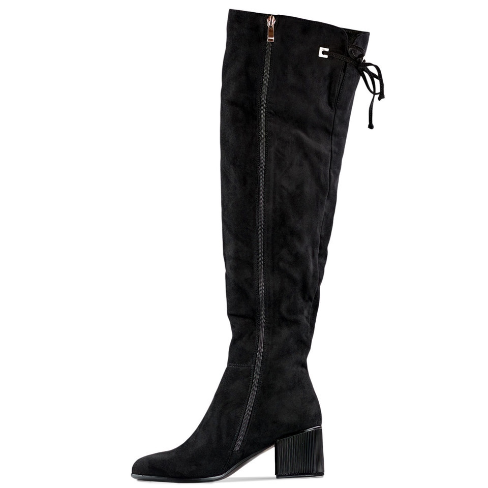 Näille saappaille on ominaista pyöristetty nenä ja 19 cm: n yläleveys, mikä tekee niistä täydellisesti sopeutumaan jalkaan. Yläosan korkeus on 54 cm, ja vakaa, 6 senttimetrin posti lisää naisellinen viehätys ja helpottaa kävelyä.