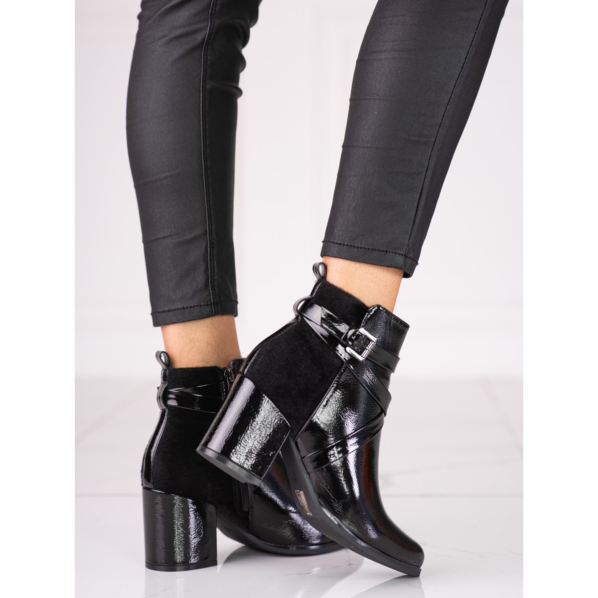 Löydä eleganssia ja mukavuutta yhdessä Shelovet-merkin naisten korkeakorkoisten nilkkurien uusimmista malleista. Nämä mustat saappaat ilahduttavat paitsi muodikkaalla ulkonäöllään myös huolellisella työstöllä. Täydelliset syys/talvikaudelle, ne sopivat täydellisesti rentoon ja eleganttiin tyyliin, mikä tekee niistä monipuolisen lisäyksen mihin tahansa vaatekaappiin.
