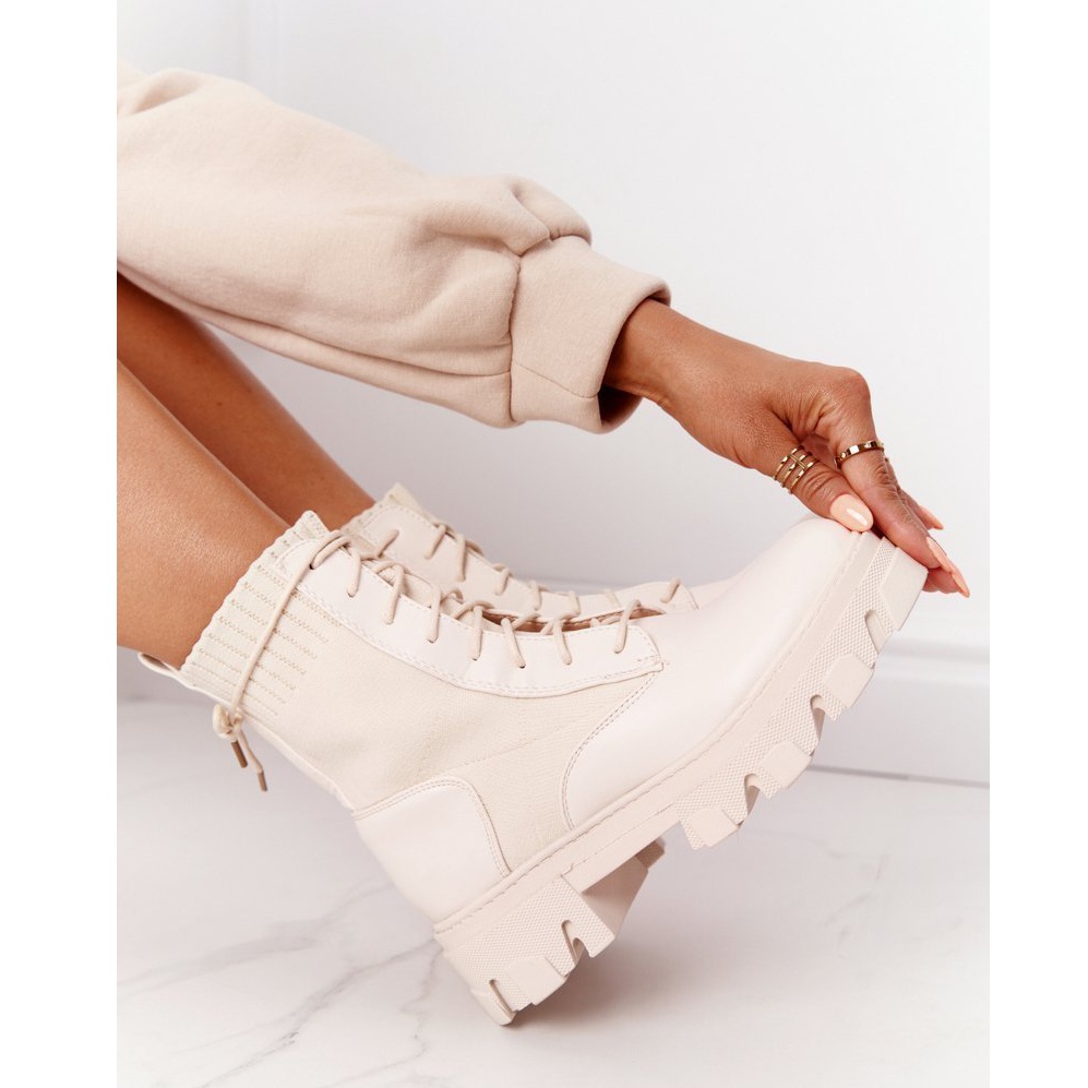 Naisten beigen väriset PS1-saappaat ovat täydellinen valinta jokaiselle naiselle, joka etsii muodikkaita ja mukavia jalkineita. Nämä laadukkaasta ekonahasta valmistetut kauniit kangaspäällisellä varustetut saappaat erottuvat vankasta rakenteestaan ja muodikkaasta muotoilustaan. Paksun pohjan ja 5 cm korkean alustan ansiosta ne takaavat paitsi kestävyyden myös käyttömukavuuden.