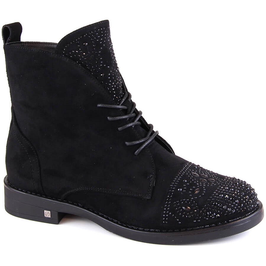 Yksityiskohdat: Naisten saappaat zirkoneilla, musta Potocki SZ12178