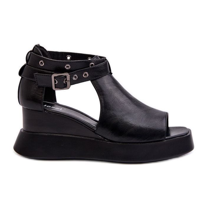 Jezzi Jezzi Naisten sandaalit alustalla ja kiilalla, jotka on valmistettu eko-nahasta, musta Hloeli