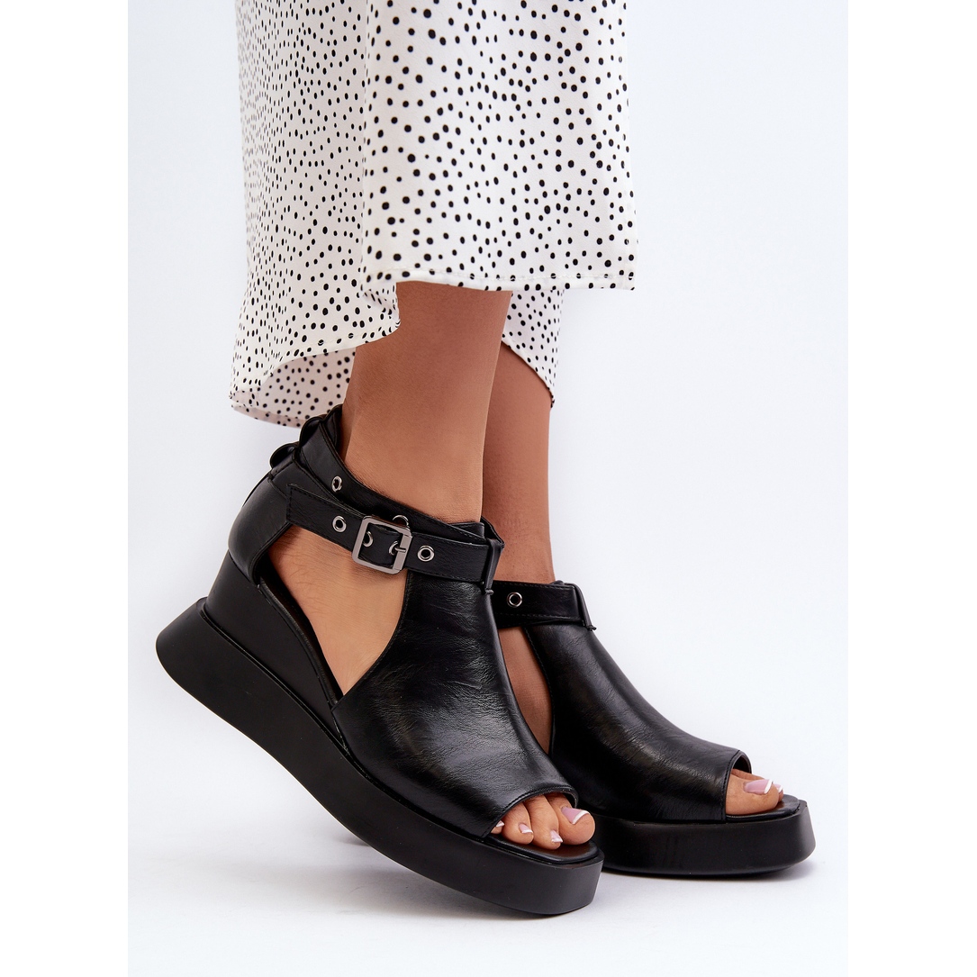 Yksityiskohdat: Jezzi Naisten sandaalit alustalla ja kiilalla, jotka on valmistettu eko-nahasta, musta Hloeli