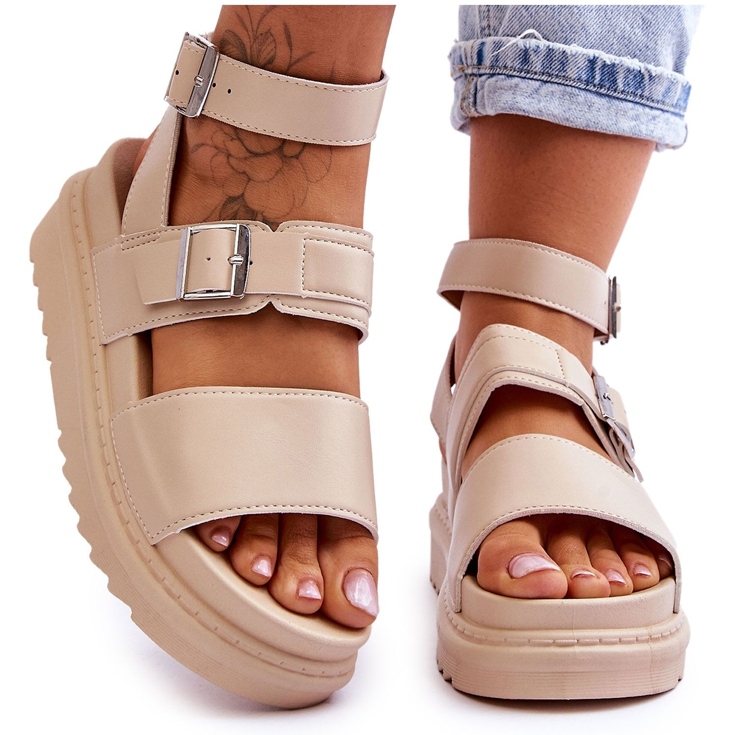 Sandaaleille on ominaista vakaa, massiivinen alusta, jonka korkeus on 5,5 cm, mikä tekee niistä täydelliset naisille, jotka haluavat mukavia korkokenkiä, jotka lisäävät muutaman senttimetrin korkeutta. Alusta, kuten kaikki jalkineet, on esteettisissä beige-väreissä, mikä tekee niistä universaaleja - ne on helppo yhdistää useimpiin vaatekaappiisi asuihin.