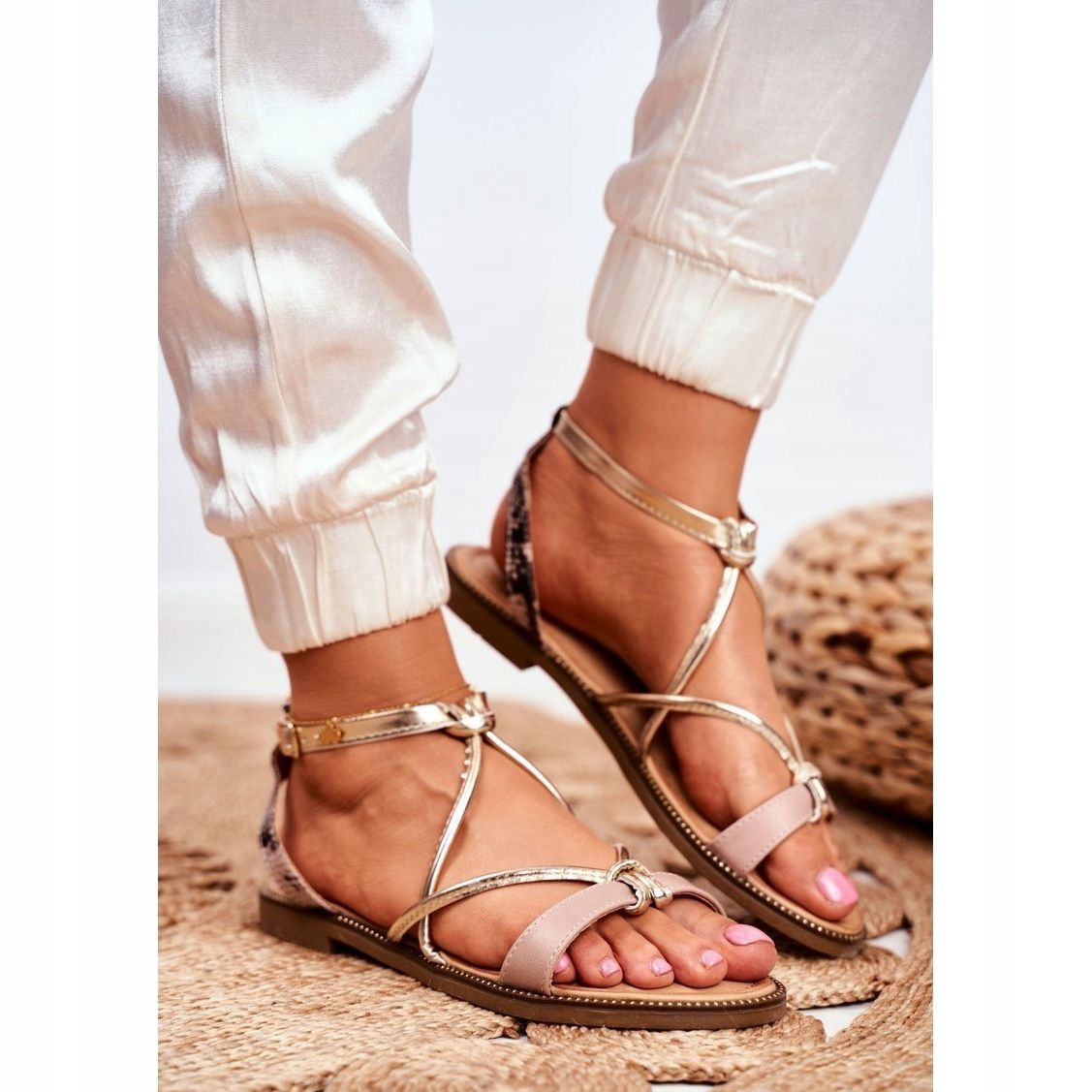 Yksityiskohdat: S.Barski Naisten sandaalit Flat Beige ja kultainen Barski Samim