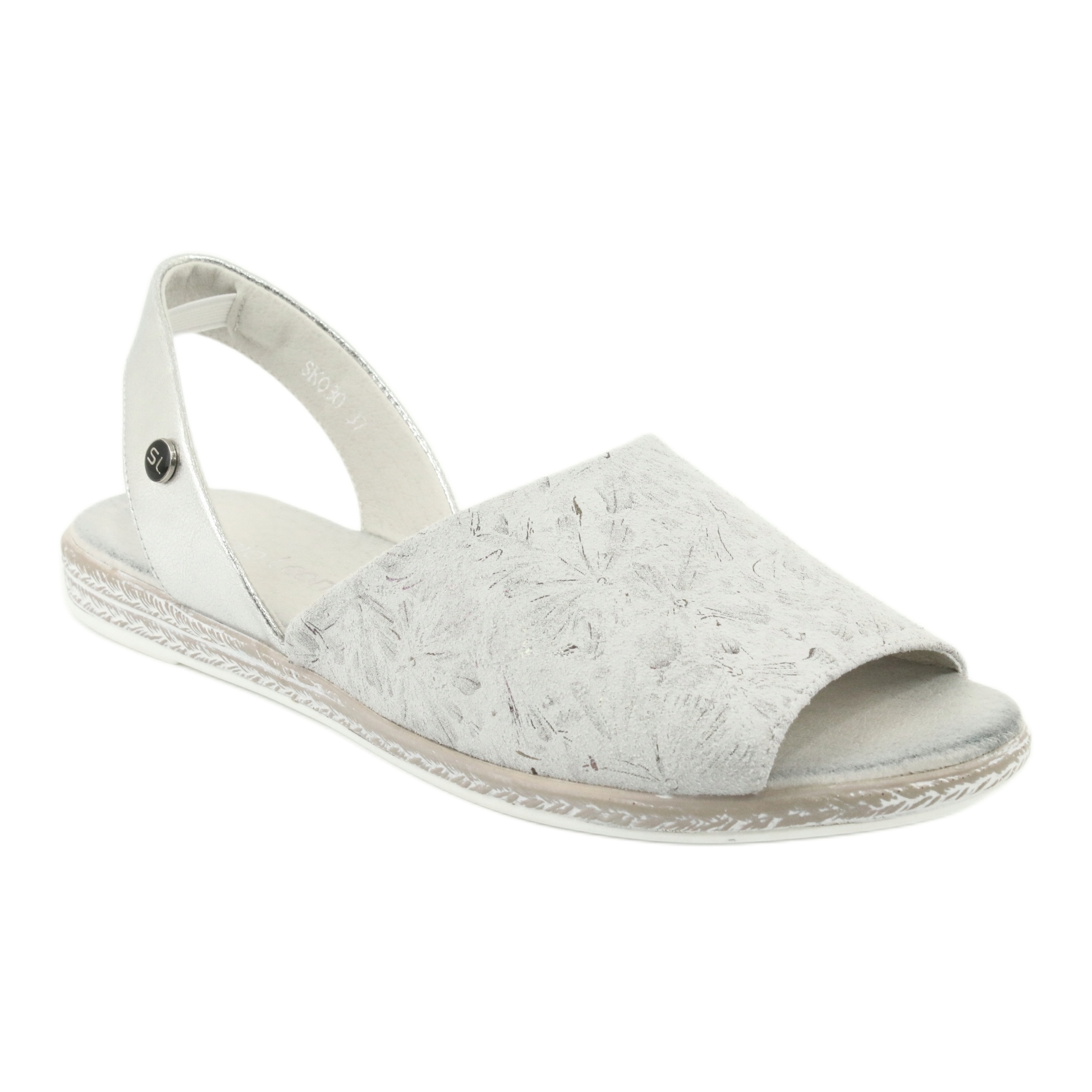 Klassinen varpaaton muotoilu yhdistettynä herkän, harmaa-hopeaväriseen sävyyn tekee näistä sandaaleista äärimmäisen universaaleja - ne voidaan yhdistää sekä kesämekkoihin että arkihousuihin. Ekologisesta materiaalista valmistettu pohjallinen takaa pehmeyden ja mukavuuden, ja synteettinen pohja on kestävä ja vakaa kaikilla pinnoilla.
