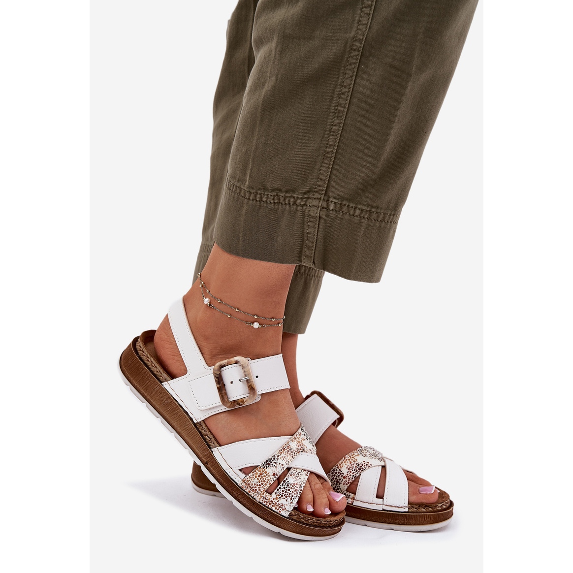 Yksityiskohdat: Naisten sandaalit, joissa on inblu gs000056 valkoinen solki