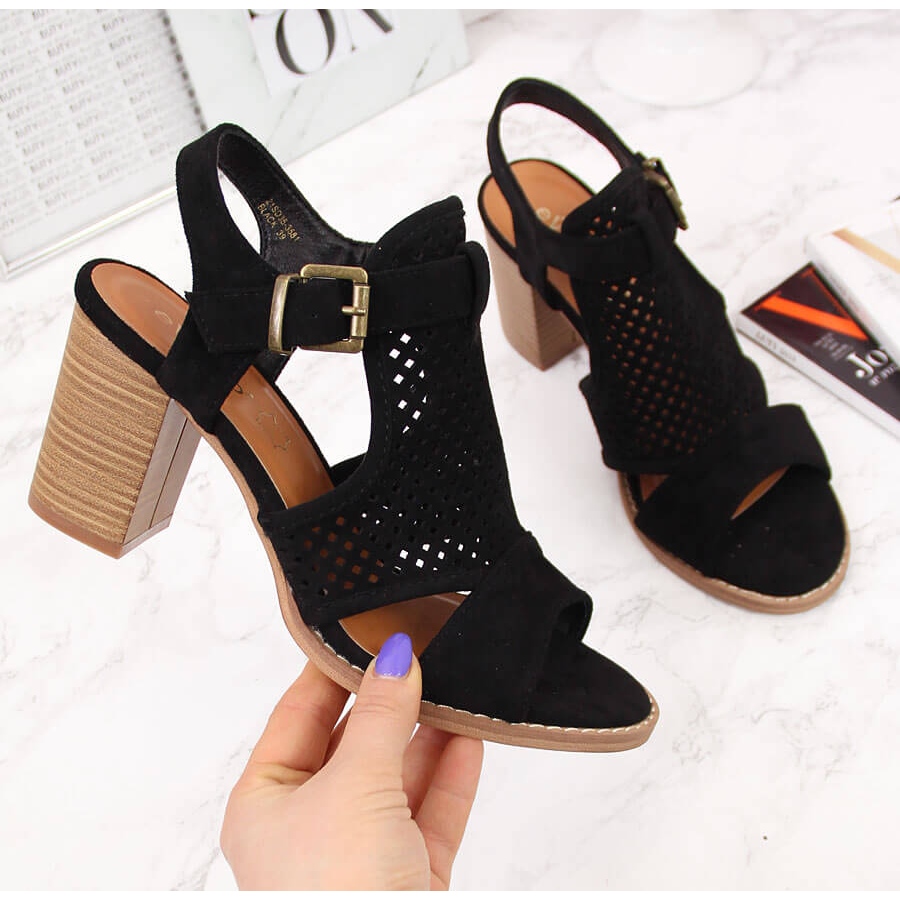 Yksityiskohdat: Naisten sandaalit, jotka on rakennettu mustaan eVento-tolppaan