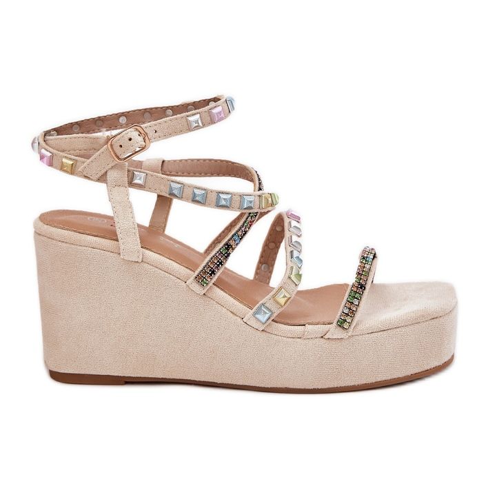 Löydä täydelliset naisten kiilan sandaalit, jotka yhdistävät eleganssin ja mukavuuden kesäpäiviin! Beige -sandaalimme, jotka on valmistettu korkealaatuisesta Eco -mokkasta, houkuttelevat silmää koristeltuilla hihnalla, jotka antavat heille ainutlaatuisen hahmon. Soljan ansiosta jokainen pari sopii täydellisen istuvuuden jalan muotoon, mikä tekee niistä paitsi tyylikkäitä, myös erittäin mukavia.