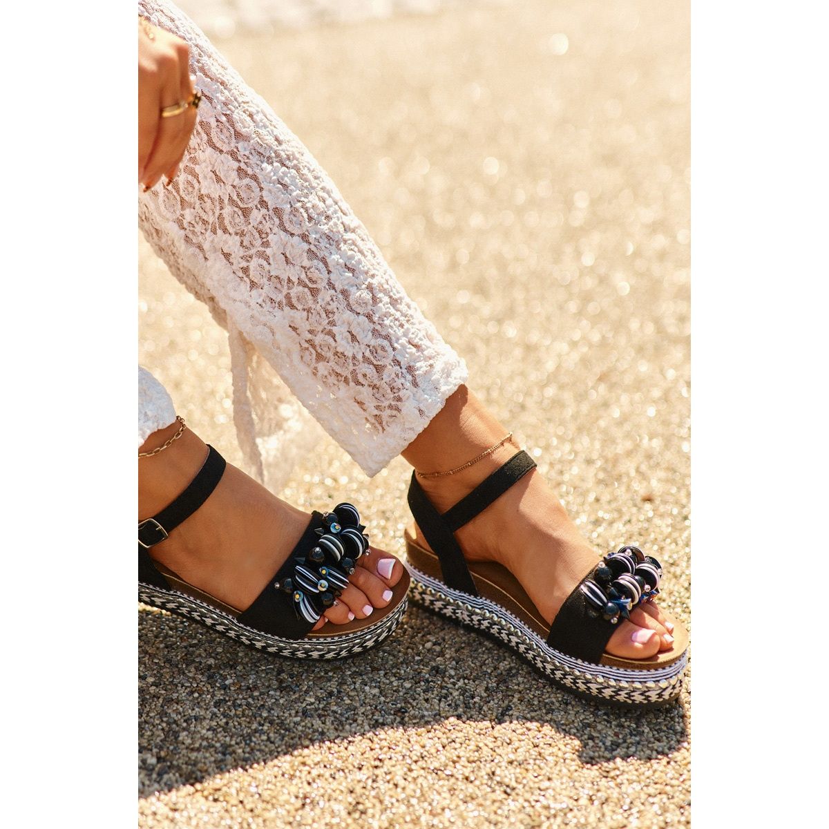 Yksityiskohdat: Naisten sandaalit kiilalla ja alustalla koristeilla S.Barski HY056 musta