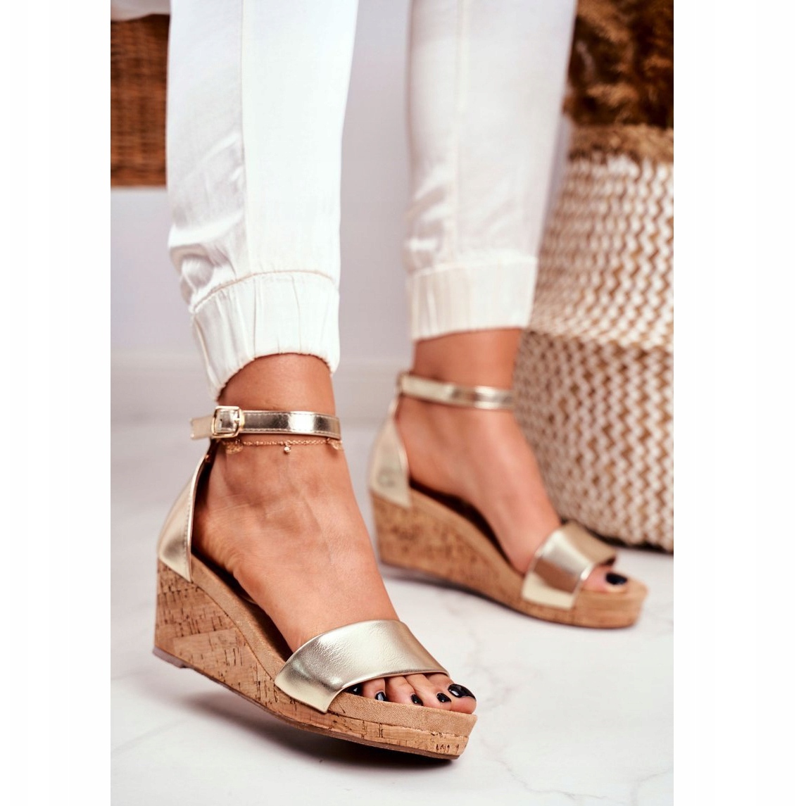 Naisten MarryMe Gold Wedge -sandaalit ovat täydellinen valinta naisille, jotka etsivät yhdistelmää eleganssia ja mukavuutta. Nämä korkealaatuisesta ekologisesta nahasta valmistetut sandaalit ilahduttavat kiiltävällä kultaisella värillään, joka sopii täydellisesti uusimpiin trendeihin. Klassisen leikkauksensa ansiosta ne sopivat moniin tyyleihin - sekä jokaiseen päivään että erikoistilaisuuksiin.