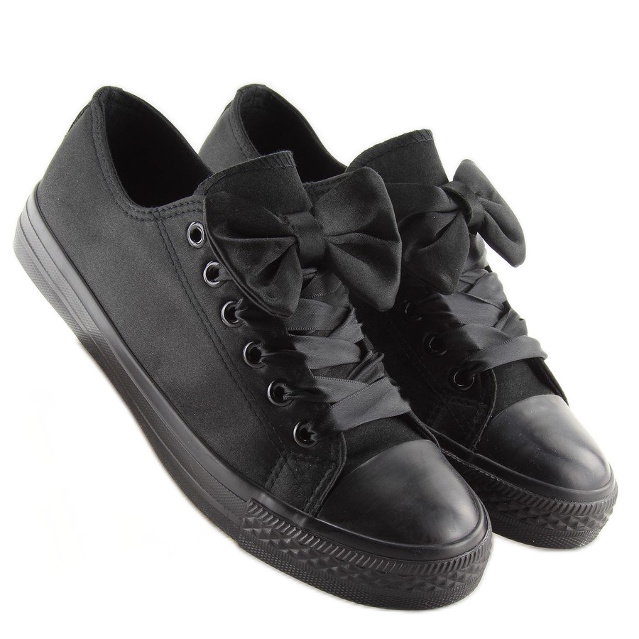 Yksityiskohdat: Naisten satiinimustat tennarit 16-509 Allblack