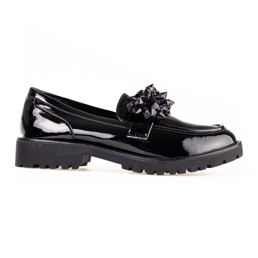 SHELOVET Naisten Shelovet-loaferit, jotka on lakattu mustilla kristalleilla musta