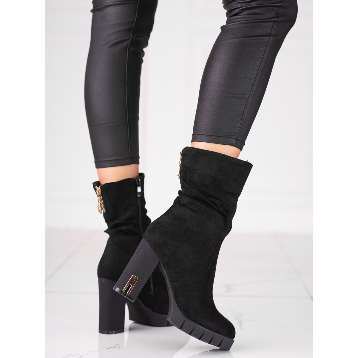 Etsitkö jalkineita, joissa klassinen eleganssi yhdistyy täydellisesti käytännölliseen arjen mukavuuteen? Shelovetin naisten mokkanahkaiset korkeakorkoiset nilkkurit ovat ehdotus, joka ilahduttaa sinua sekä ulkonäöllään että käyttömukavuudellaan. Musta, universaali ja tyylikäs - siksi niistä voi tulla suosikkielementtisi syksyn tai talven asussa.