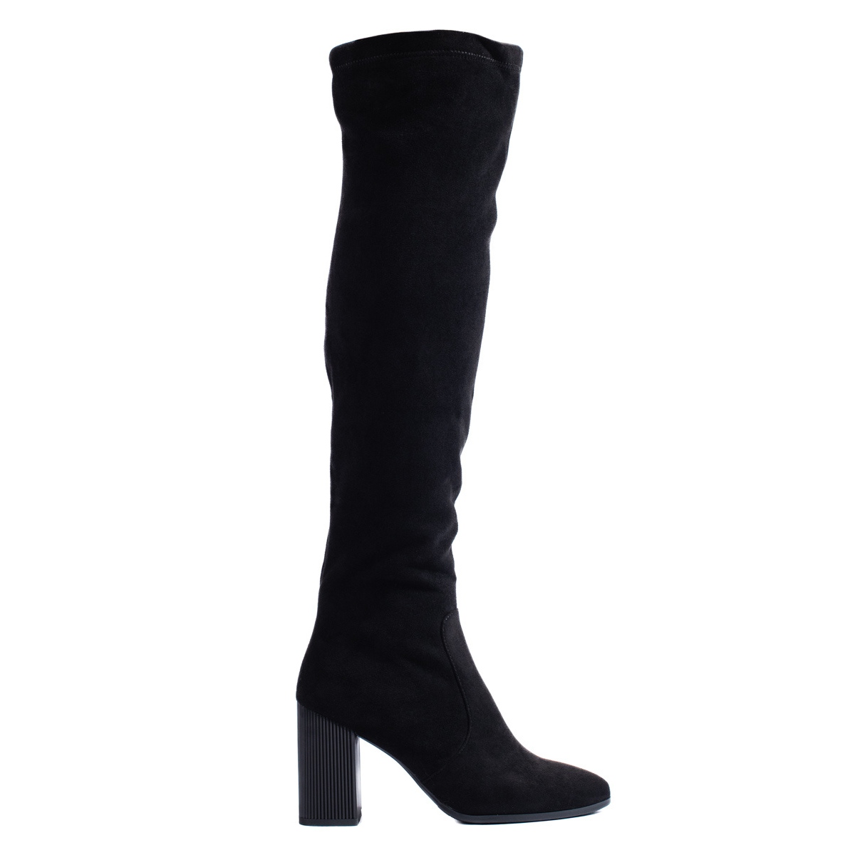Pyöreän varpaan ja kuvioiden puutteen ansiosta nämä muskettisoturit sopivat täydellisesti tyylikkäisiin tyyleihin ja sopivat täydellisesti iltaan, juhliin ja juhliin. Niiden yläkorkeus on 55 cm, joten ne korostavat kauniisti jalkoja, ja yläleveys 42 cm varmistaa oikean istuvuuden.