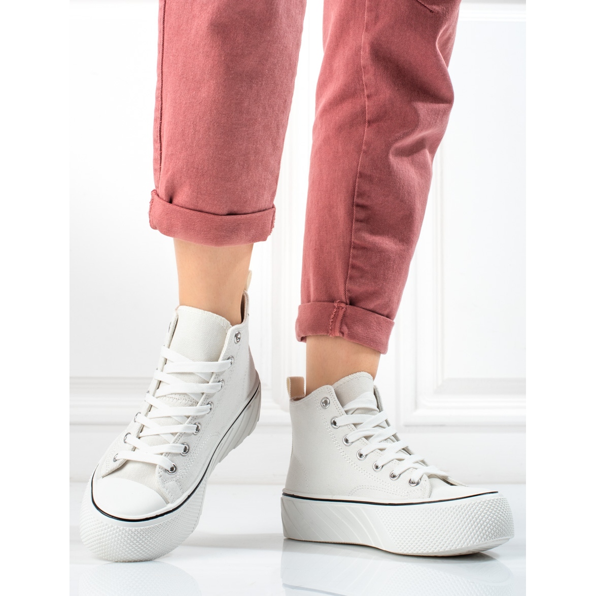 SHELOVET Naisten Shelovetin valkoiset korkeat lenkkarit valkoinen
