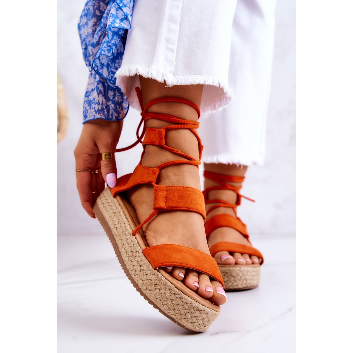 Esittelemme oranssinväriset naisten FW1 alustasandaalit, jotka ilahduttavat sekä ulkonäöllään että käyttömukavuudellaan. Nämä upeat nauhalliset espadrillit sopivat kaikkiin tilaisuuksiin - jokapäiväisistä kävelylenkeistä iltaan ystävien kanssa.