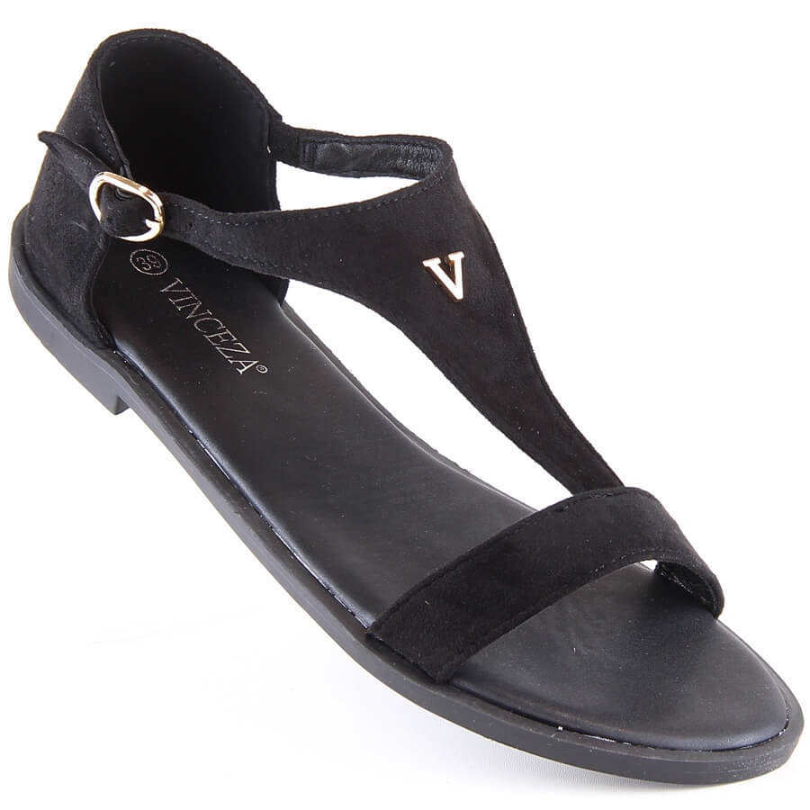 - Malli: Naisten tasaiset, mustat mokkanahkasandaalit Vinceza