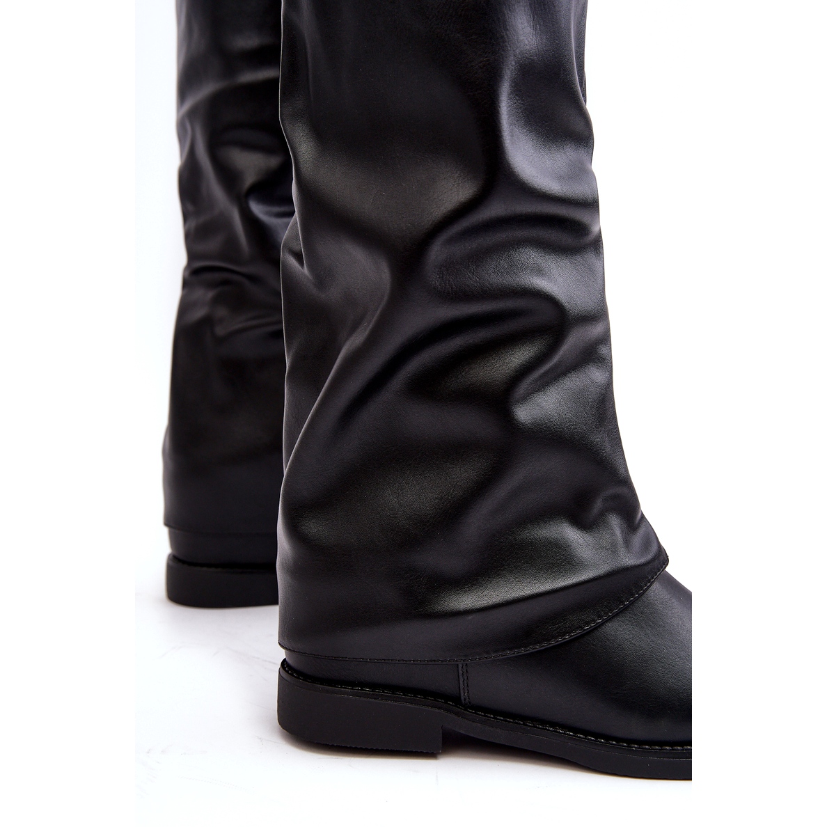 Inna marka Naisten tasaiset saappaat, joissa on rypytetty päällinen, musta Tercella