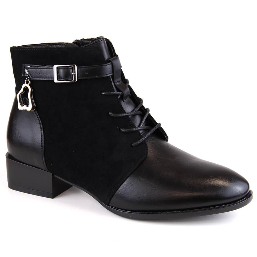 Naisten saappaat Potocki SZ12260 - klassikko talvierässä. Tyylikäs, mustia nilkkasaappaa yhdistävät mukavuuden ja toiminnallisuuden: eristys varmistaa mukavuuden viileämpien päivien aikana, ja tasainen kantapää, jonka korkeus on 3 cm, antaa vakauden jokapäiväisen käytön kanssa.