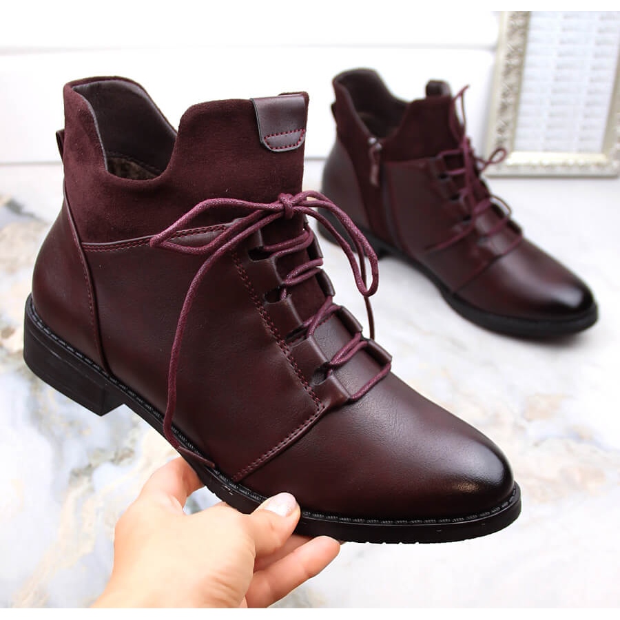 Yksityiskohdat: M. DASZYŃSKI Naisten tasakorkoiset saappaat, eristetty, viininpunainen M.Daszyński MR2251-6