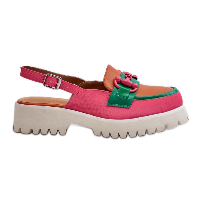 Tämä malli erotetaan takaosassa olevasta säädettävästä vyöstä, joka tarjoaa täydellisen istuvuuden jalkaan, mikä on ratkaisevan tärkeää mukavuudelle kaikkien päivän kuluessa. Litteä kantapää, jonka korkeus on 4 cm, takaa vakauden ja ylimääräinen 2,5 cm: n korkea alusta tekee askeleen valon ja vapaan.