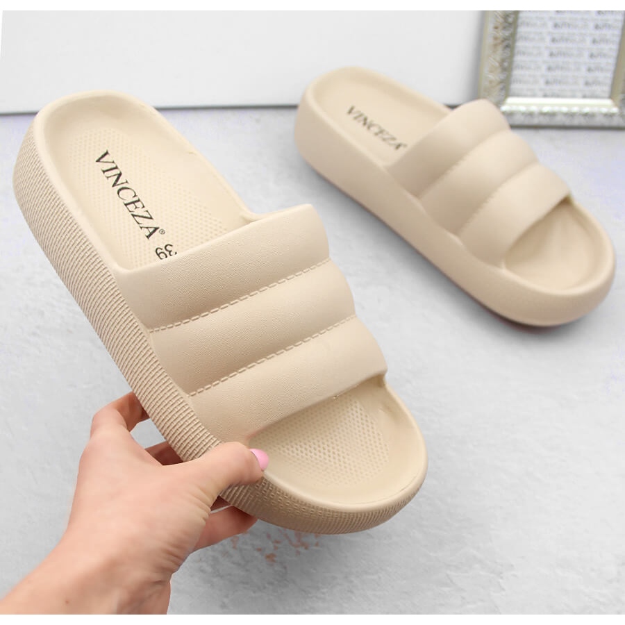 Sijoita tyyliin ja mukavuuteen kesäksi naisten läpät Beige Vinceza 75204 Beige -tikattuun alustaan! Täydellinen rannalle, puutarhaan tai kävelylle ympäri kaupunkia.