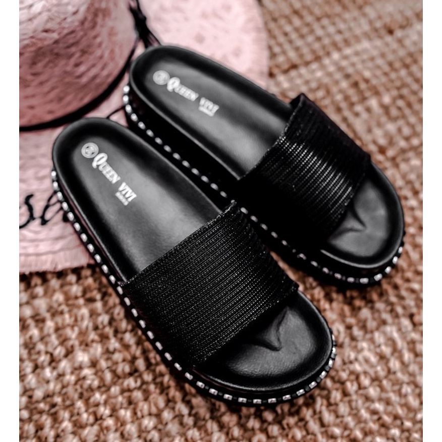 Yksityiskohdat: Naisten tohvelit alustalla Musta hopea Venima