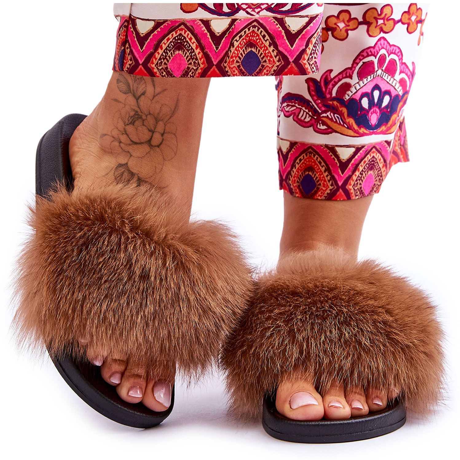 BM BM Naisten tohvelit, joissa on luonnonkarvainen ruskea naturis
