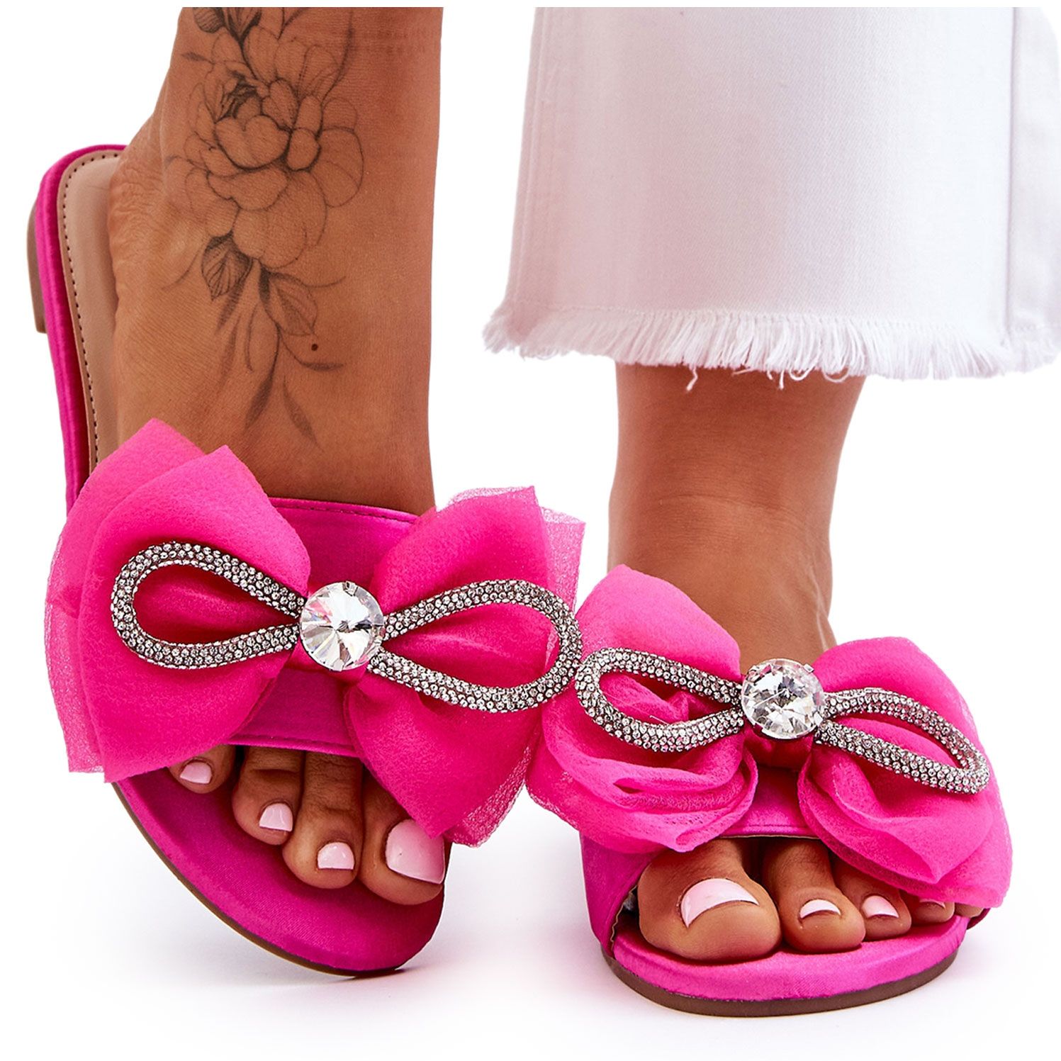 Yksityiskohdat: PS1 Naisten tossut rusetilla ja strassilla Fuchsia Jolene vaaleanpunainen