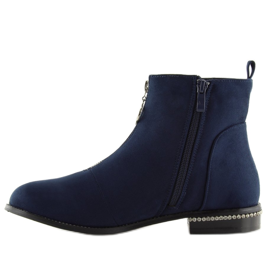 Löydä ainutlaatuiset naisten laivastonsiniset LL6300 Blue -nilkkurit, joissa yhdistyvät täydellisesti eleganssi ja arjen mukavuus. Alkuperäisen suunnittelun ansiosta nämä kengät ovat täydellinen valinta syyspäiviin. Niissä on 2 cm korkea litteä kantapää, joka takaa käyttömukavuuden koko päivän, ja hienovaraiset koristeet strassien muodossa ja hopeavetoketju edessä antavat niille ainutlaatuisen karisman.
