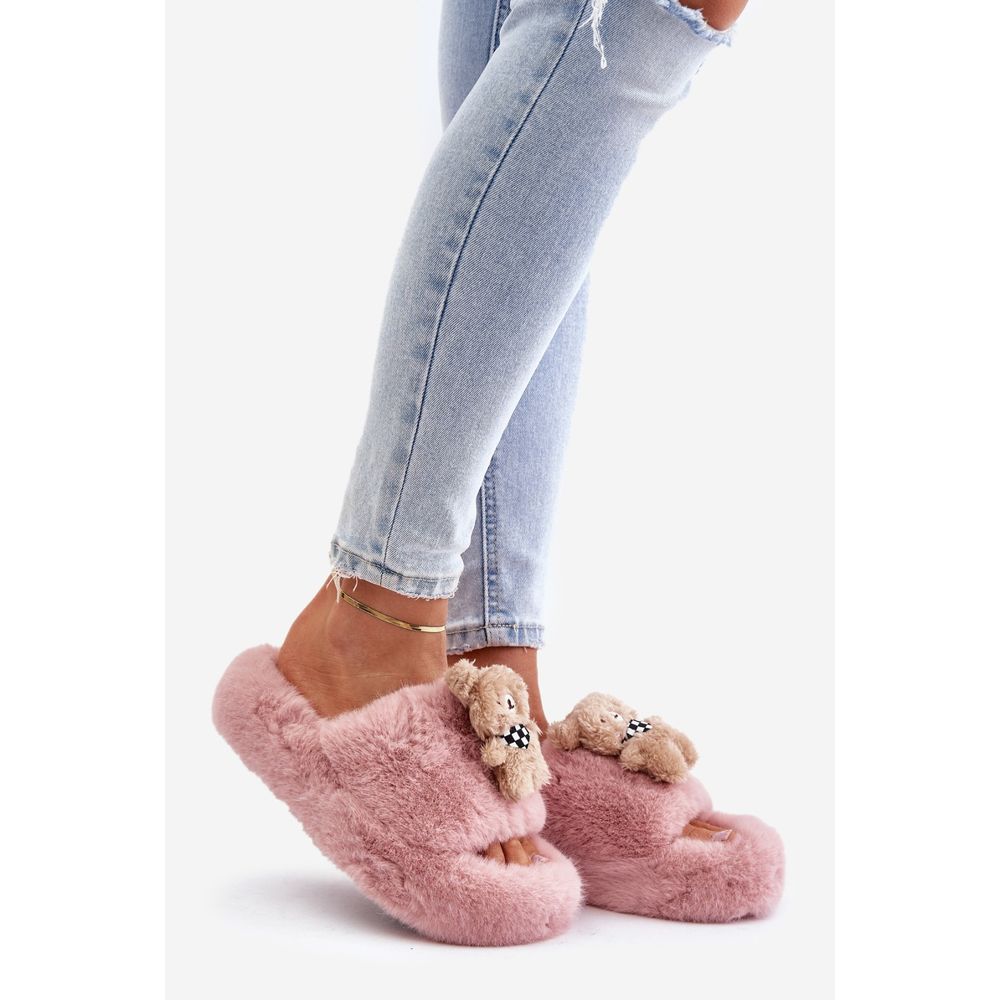 Yksityiskohdat: Naisten turkistossut nallella, vaaleanpunainen Romania