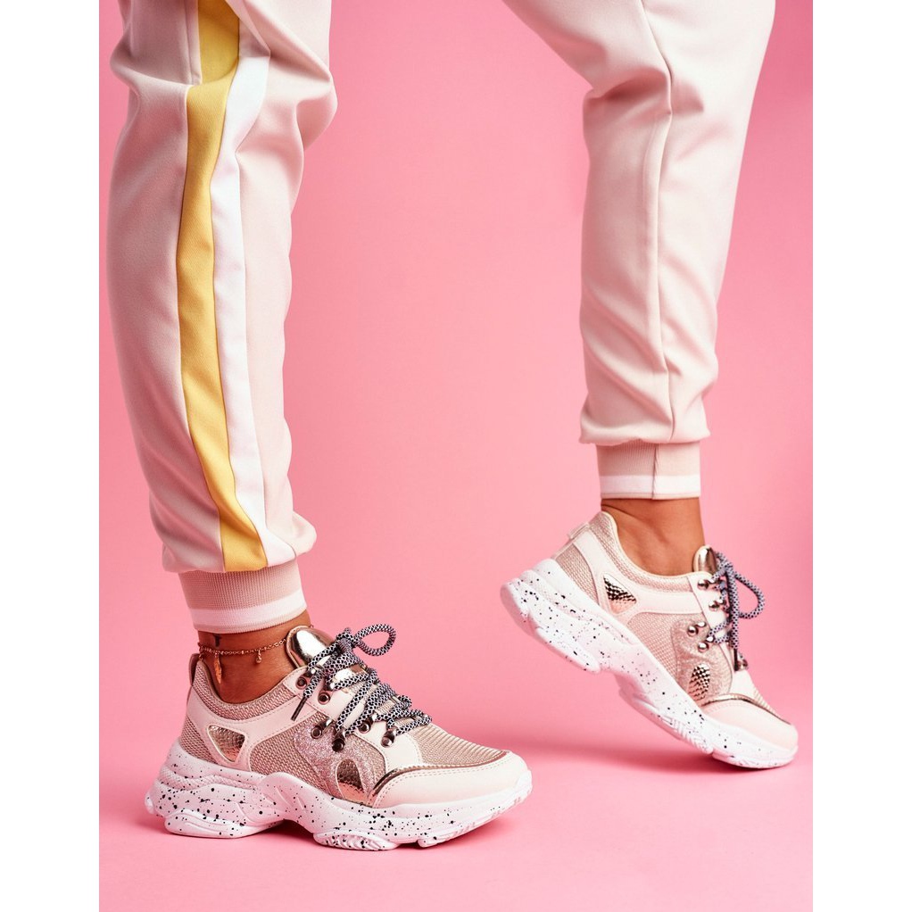 Valmistettu ekologisen nahan ja verkkomateriaalin yhdistelmästä, päällinen ei ole vain esteettinen, vaan myös hengittävä. Ylimääräinen aksentti glitterpölyn muodossa antaa niille ainutlaatuisen luonteen, joten ne täydentävät täydellisesti sekä urheilu- että vapaa-ajan tyylejä.