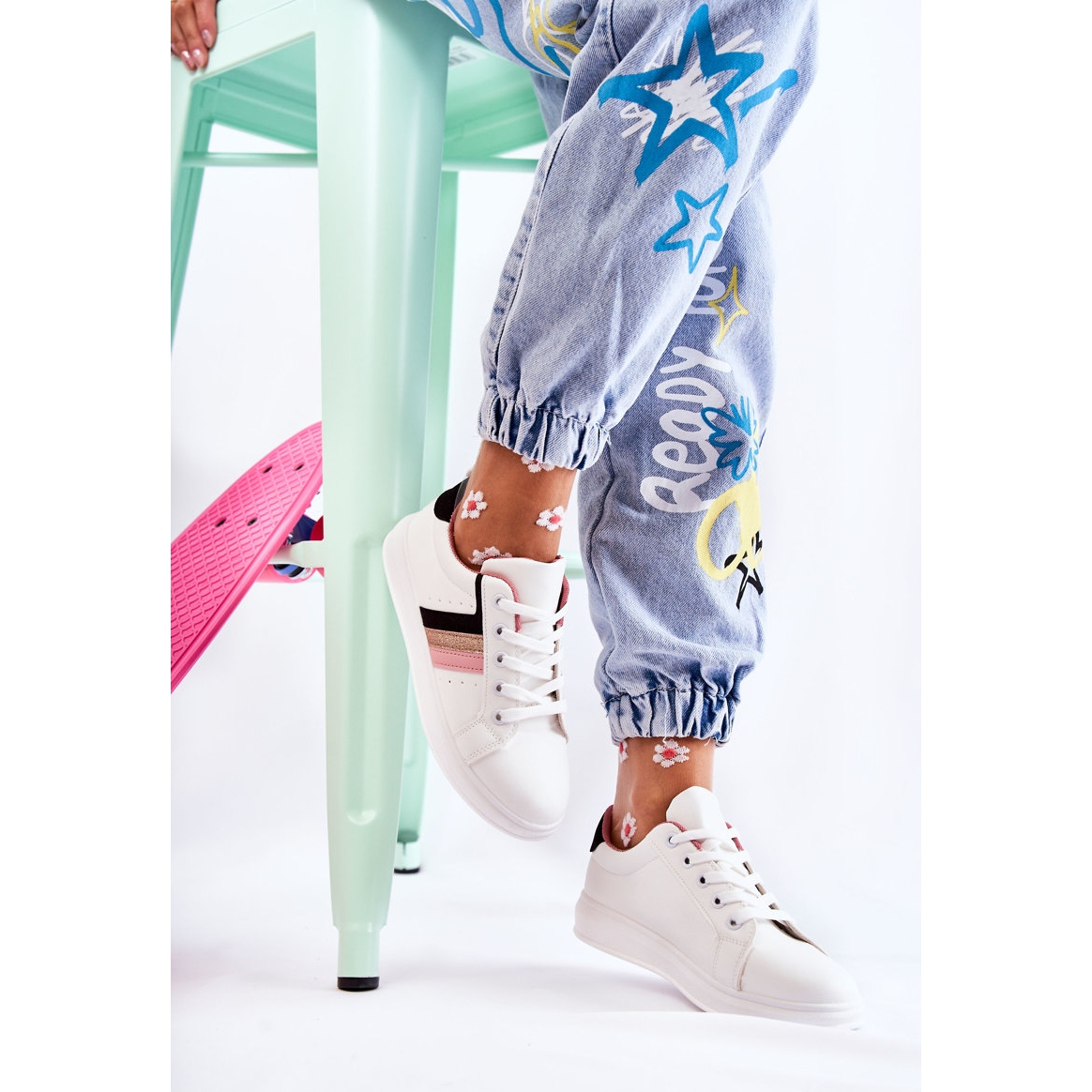 FK2 FK2 Naisten urheilukengät, jotka on sidottu valkoiseen Renesmeen valkoinen musta vaaleanpunainen kultainen