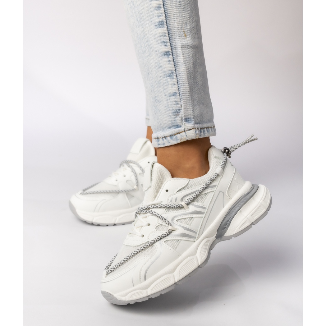 Löydä mukavuuden ja tyylin uusi ulottuvuus naisten urheilun lenkkarien kanssa valkoisella/harmaalla! Nämä pitsi -UP -kengät ovat erinomainen valinta aktiivisille naisille, jotka haluavat yhdistää toiminnallisuuden muodikkaasta ilmeestä. Ainutlaatuinen, massiivinen pohja, jonka korkeus on 5 cm, lisää paitsi tyyliä, myös keveyttä jokaisessa vaiheessa, mikä tekee niistä täydellisiä jokapäiväiseen toimintaan.