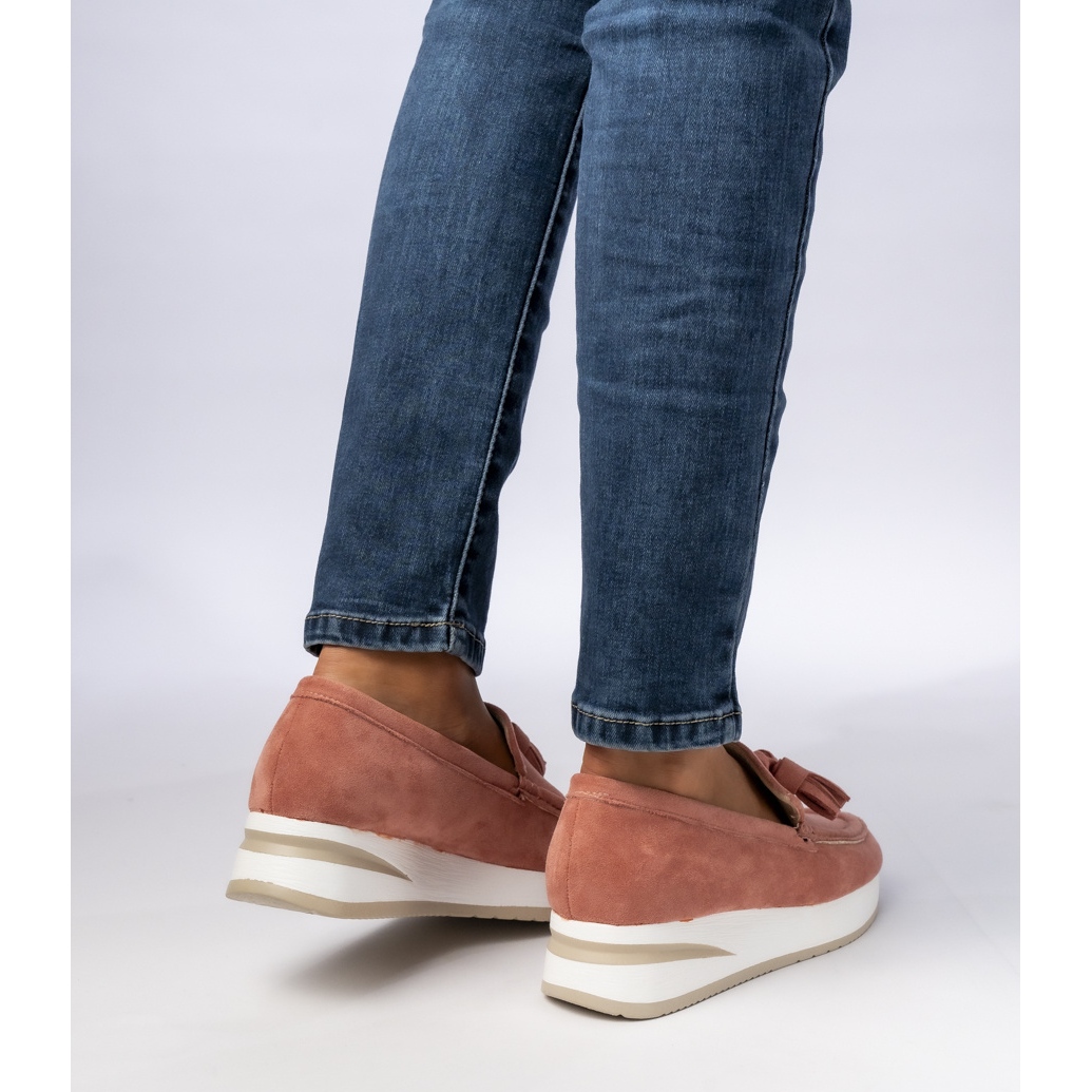 Esitämme naisten leipomot, joissa on hapsut tyylikkäässä jauheen vaaleanpunaisessa jauheessa - täydellinen valinta naisille, jotka arvostavat tyyliä ja mukavuutta! Korkealaatuisesta mokkanahasta valmistettu nämä leipät erottuvat pehmeydestä ja kestävyydestä, mikä varmistaa mukavuuden koko päivän.