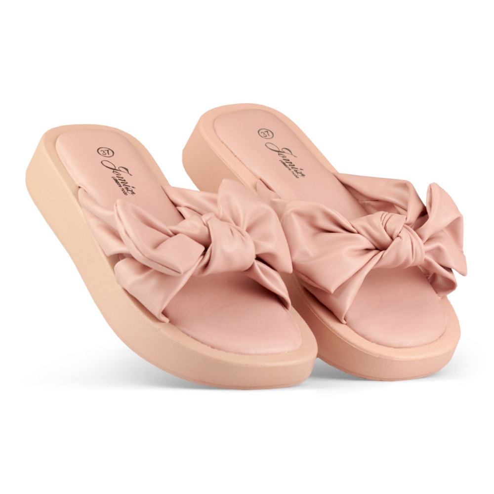 Suunnittelijat keskittyivät yksinkertaisuuteen ja eleganssiin, mikä ilmenee minimalistisessa muotoilussa ja muodikkaassa pinkin pastellisävyssä, joka antaa kengille tyttömäisen viehätyksen. Näiden varvastossojen ominainen piirre on jalkineiden etuosaan sijoitettu herkkä rusetti, joka lisää niihin hienovaraista kauneutta ja ainutlaatuista luonnetta.