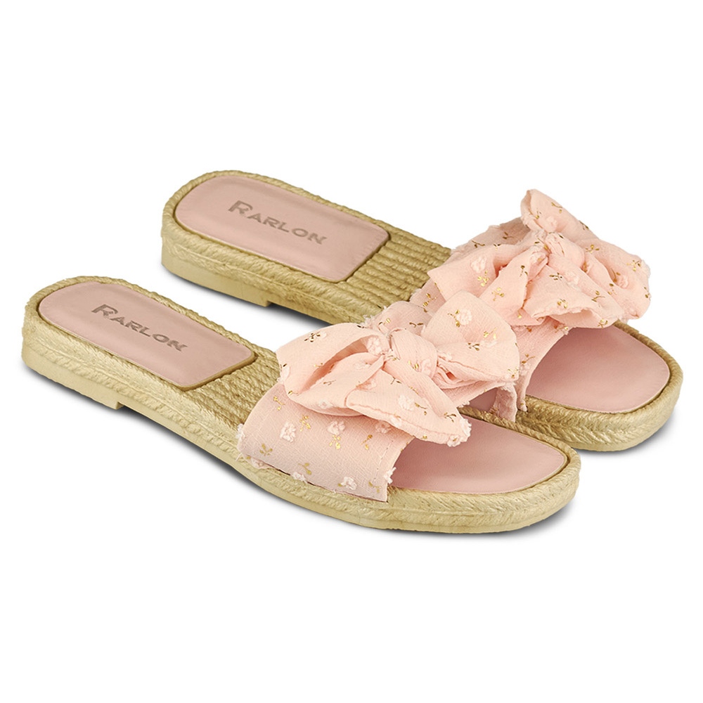 Yksityiskohdat: Naisten vaaleanpunaiset tossut rusetilla vaaleanpunainen