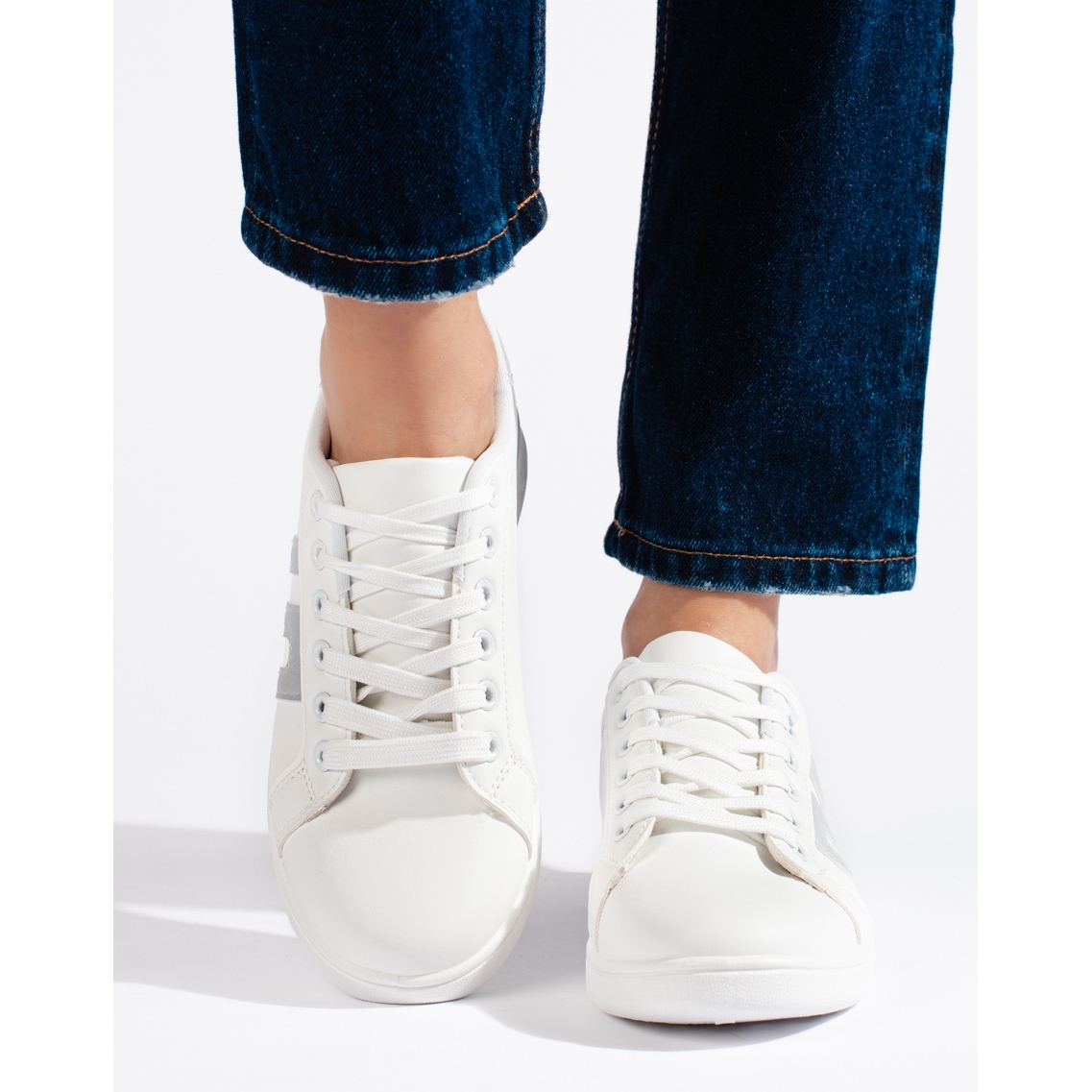 Yksityiskohdat: Naisten valkoiset ja hopeiset tennarit valkoinen