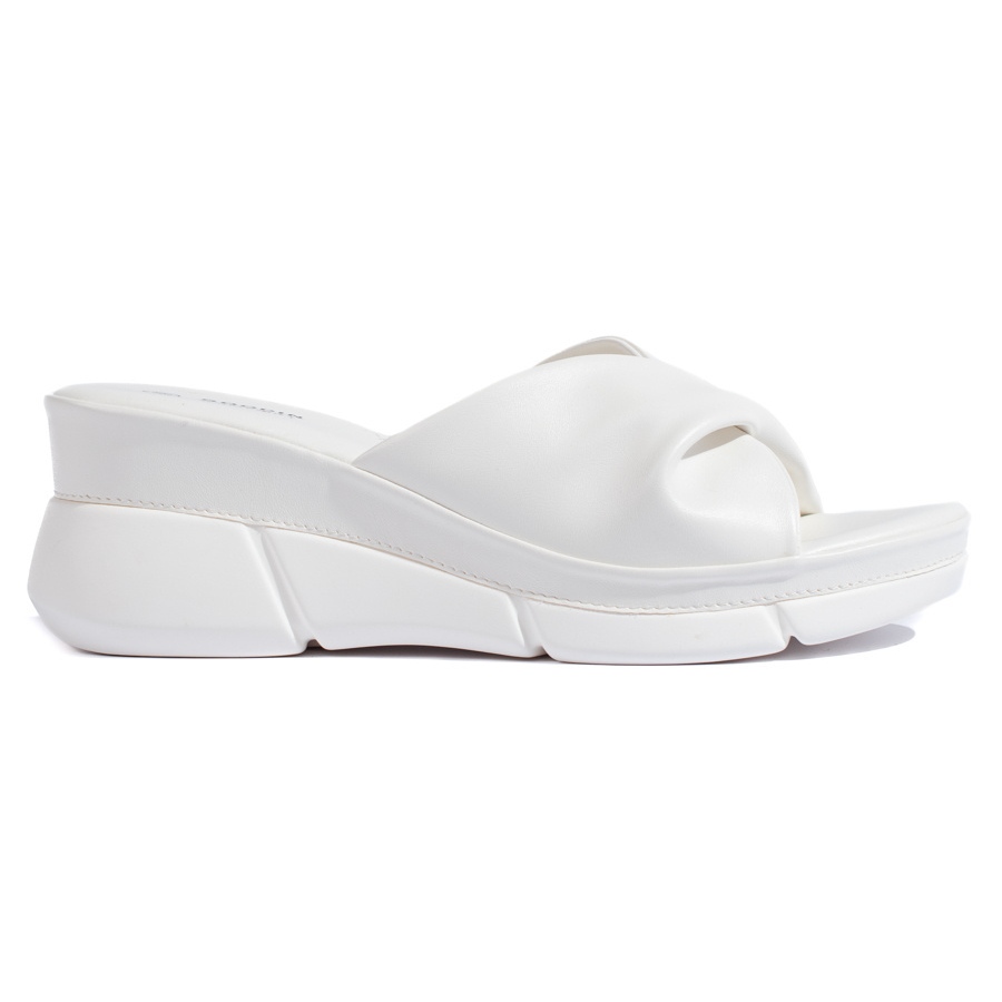 Nämä valkoiset kiilat asetetaan, mikä tarkoittaa, että niiden asettaminen ja poistaminen on erittäin yksinkertaista ja nopeaa. Ilman nenää ne ovat erinomainen vaihtoehto perinteisille sandaaleille, ja niiden minimalistinen muotoilu ilman mallia tekee niistä helpon yhdistää värikkäiden mekkojen, housujen tai shortsien kanssa.