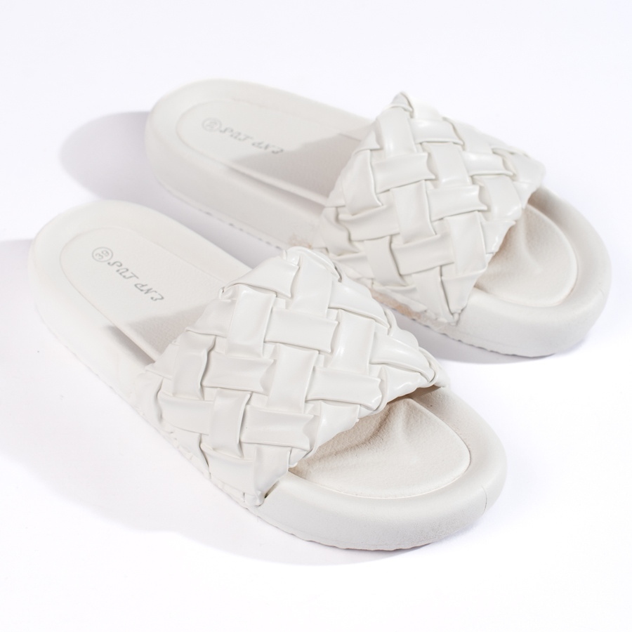 - Malli: Naisten valkoiset palmikoidut tossut