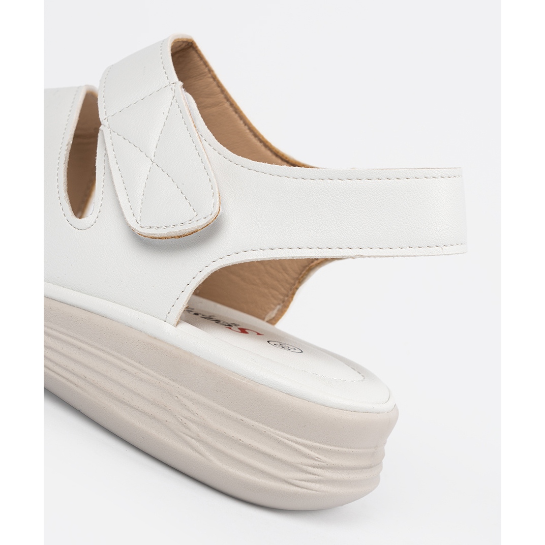 Käytännöllinen tarranauhan kiinnitys helpottaa jalkineiden asettamista ja poistamista, ja myös mahdollistaa yksilöllisten tarpeiden täydellisesti. Valkoinen väri saa sandaalit sopeutumaan täydellisesti kesätrendeihin, jotka sopivat täydellisesti erilaisiin sävyihin ja kuvioihin.