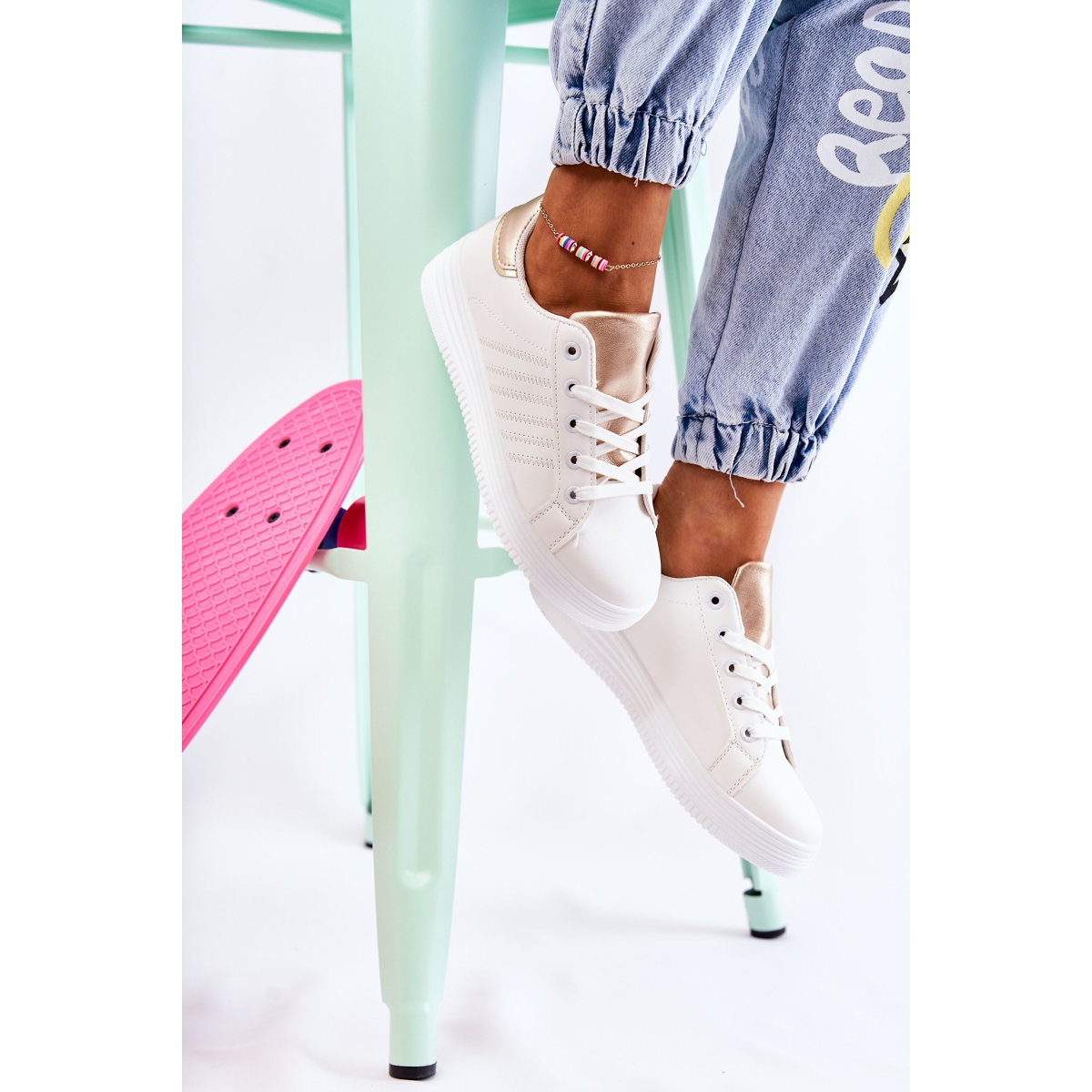 Yksityiskohdat: FK2 Naisten valkoiset urheilukengät Samanta valkoinen kultainen